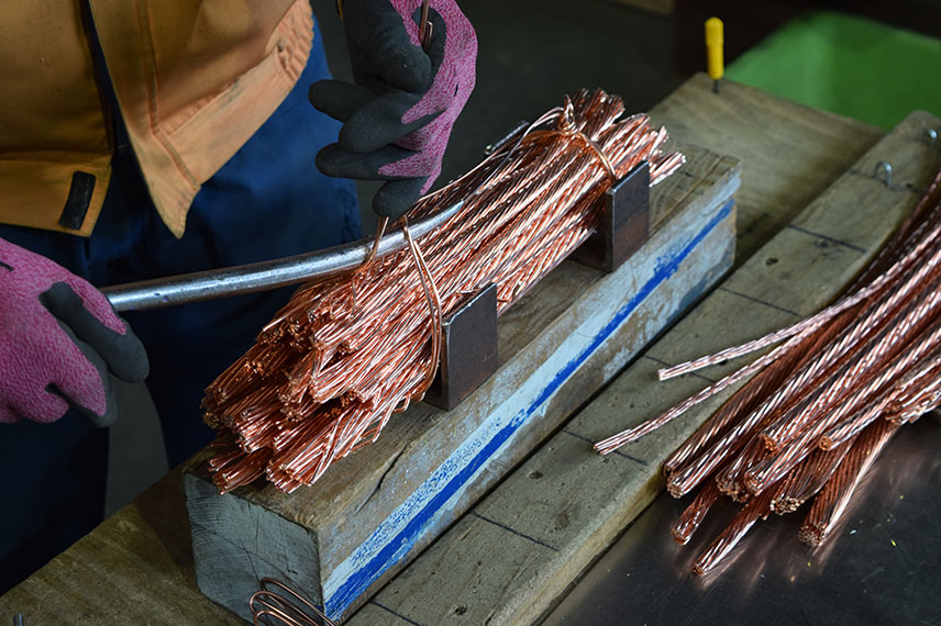 電線加工工場や土木建築、工場解体時などに発生する銅線スクラップ。銅品位は30%以下のものから80%以上のものまで様々。